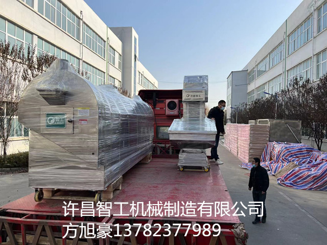 许昌智工四米电磁流水线设备时产450斤,可炒制瓜子,杏仁,杏核等物料,自动上料自动炒制自动筛选自动冷却,省人工效果好,产量高。