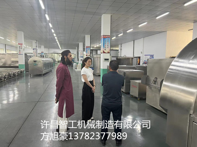 2023年5月19日,阿拉伯客户一行二人来到许昌智工考察电磁炒货设备。