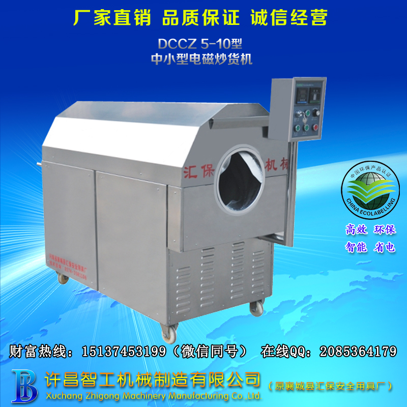 开干果店做好线下就可以了吗?如今线上消费的也是一个很大的市场,如果有足够的多的时间,可以选择多元化的销售,比如朋友圈销售,淘宝上的销售,还有网站上的推广销售。比如“三只松鼠”在线上销售就做的很不错的。 5.生产工序简单化 现在炒货机的发展是飞速的,特别是许昌智工生产的电磁炒货机,省时,省力操作简单采用智能控制,操作人员根据需要可自由设定,因此安全性高(无炒糊和无火灾现象),炒制品质一致,换班换人都不影响炒制品的品质。