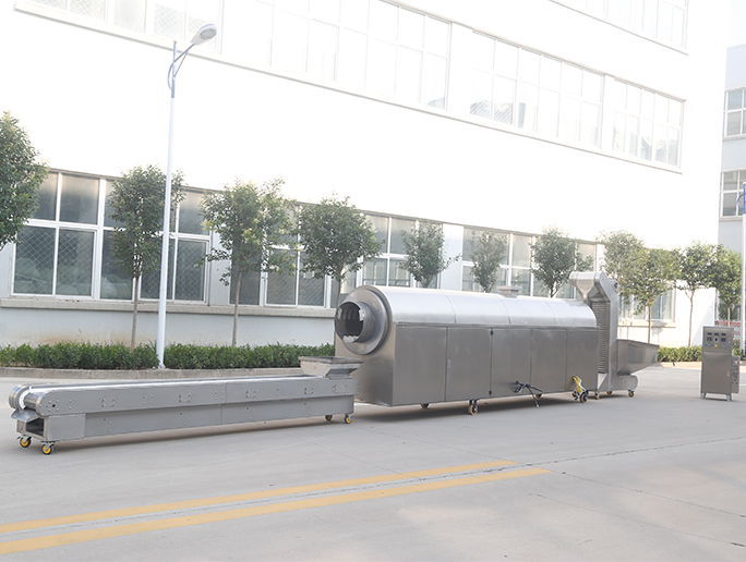 智工汇保提供2米至10米混炒流水线炒货机,搭配提升机、冷却床、振动筛打造自动化炒货作业流水线 省人工 高产量 低能耗,清洁生产,自动炒货