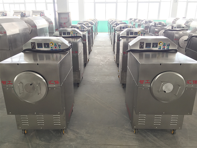 全自动炒货机无需人工看管 只需设置好炒制温度 炒熟自动警报只需一键出锅 无需炒货经验 三分钟上手 操作简单智能化程度高 该机是智工汇保三相电最小的全自动炒货机